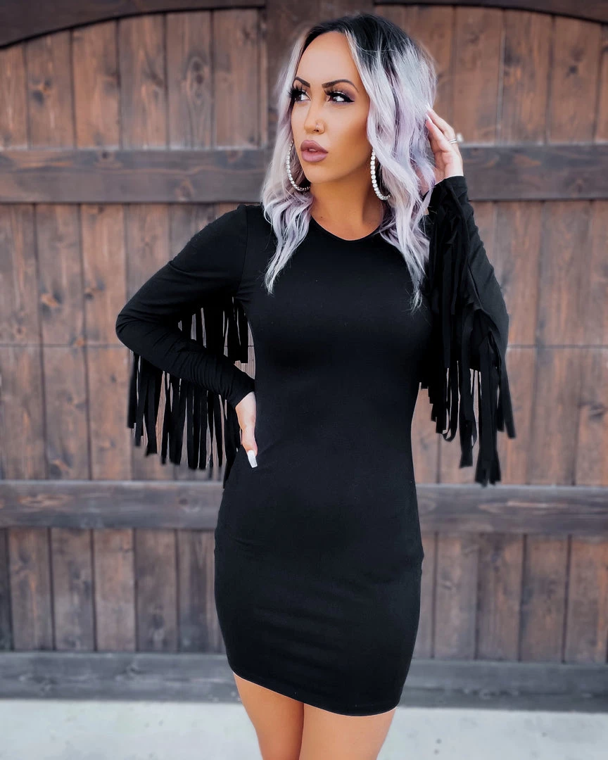 Bar T Boutique Fringe Fancy Bodycon Dress – Black What’s New!