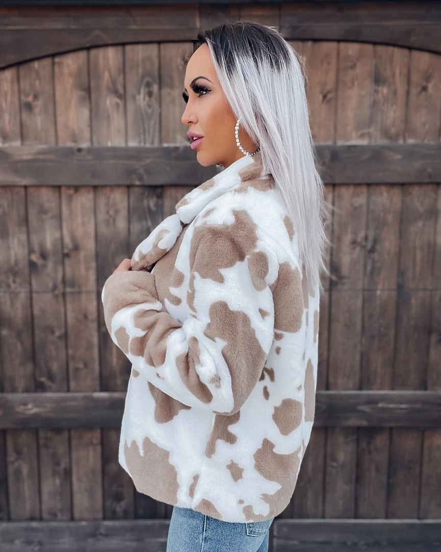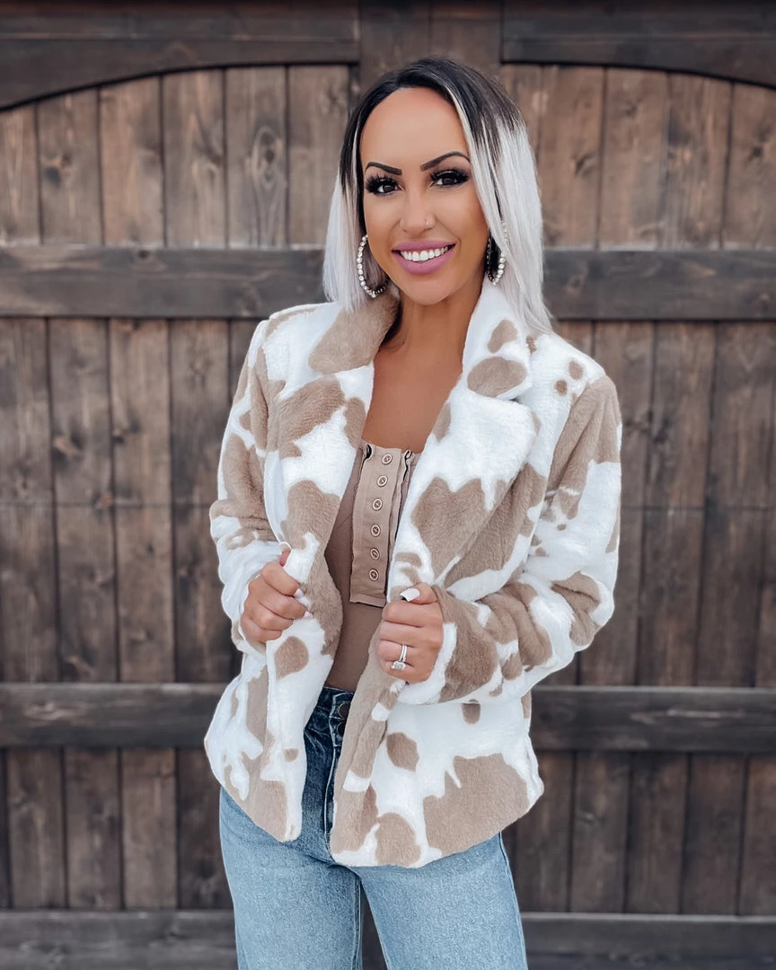 Bar T Boutique Holy Cow Faux Fur Jacket – Ivory/Taupe