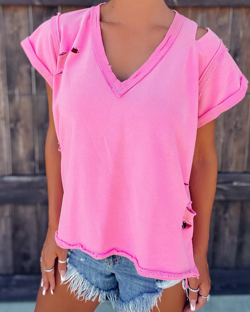 Bar T Boutique LLC Bring It Back Distressed Cut Top – Pink What’s New!