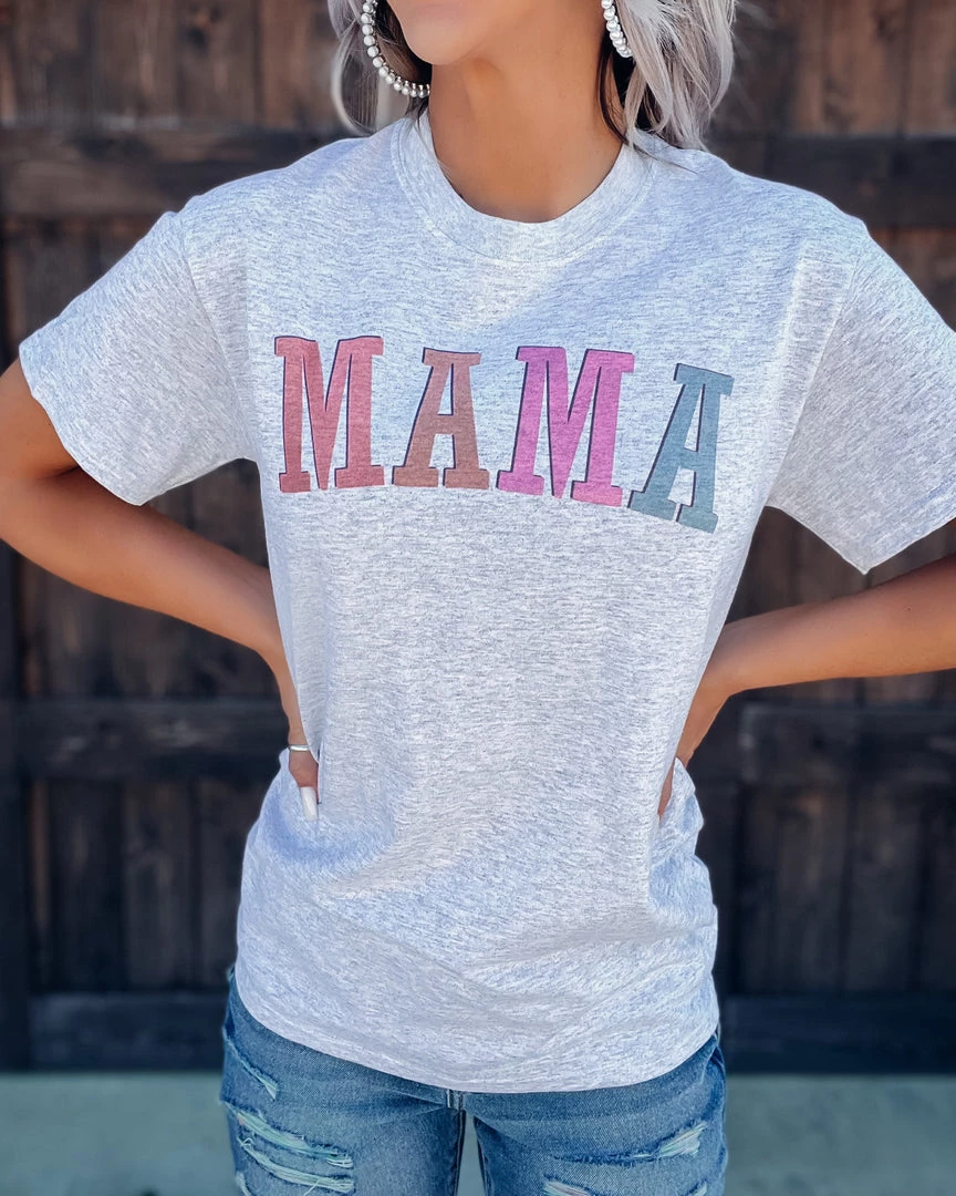 Bar T Boutique LLC Colorful MAMA Tee – Ash Gray
