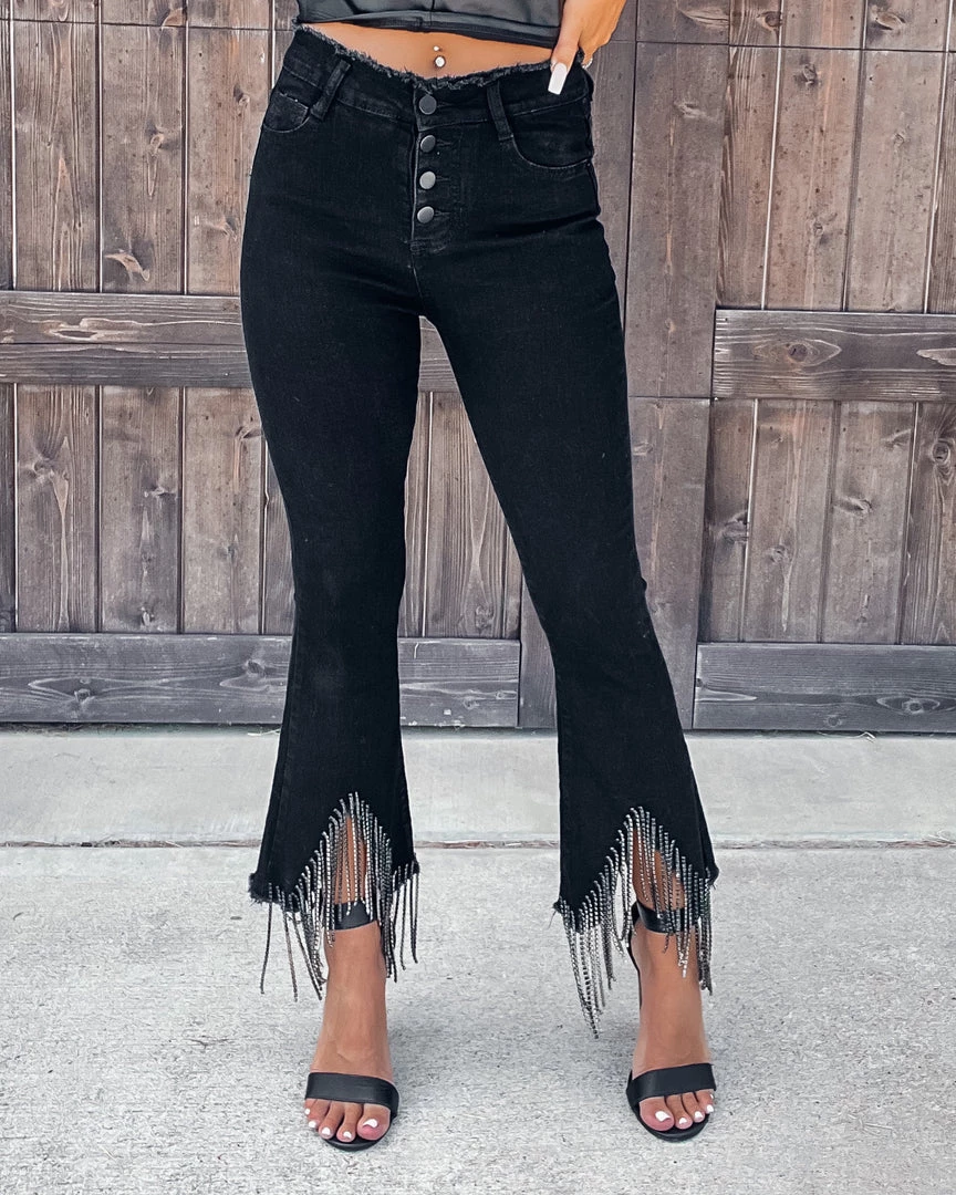 Bar T Boutique LLC Iconic Rhinestone Fringe Denim Pants – Black What’s New!