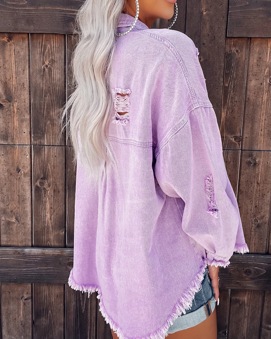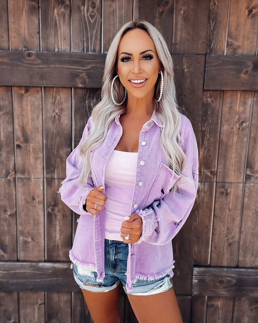 Bar T Boutique LLC Summer Fun Distressed Shacket – Purple