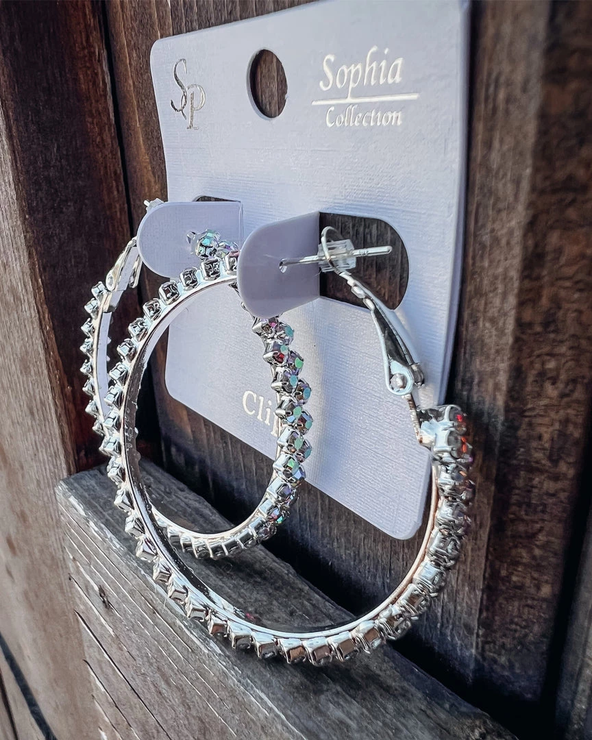 Bar T Boutique LLC What’s New! Divine Rhinestone Hoop Earrings – Silver AB