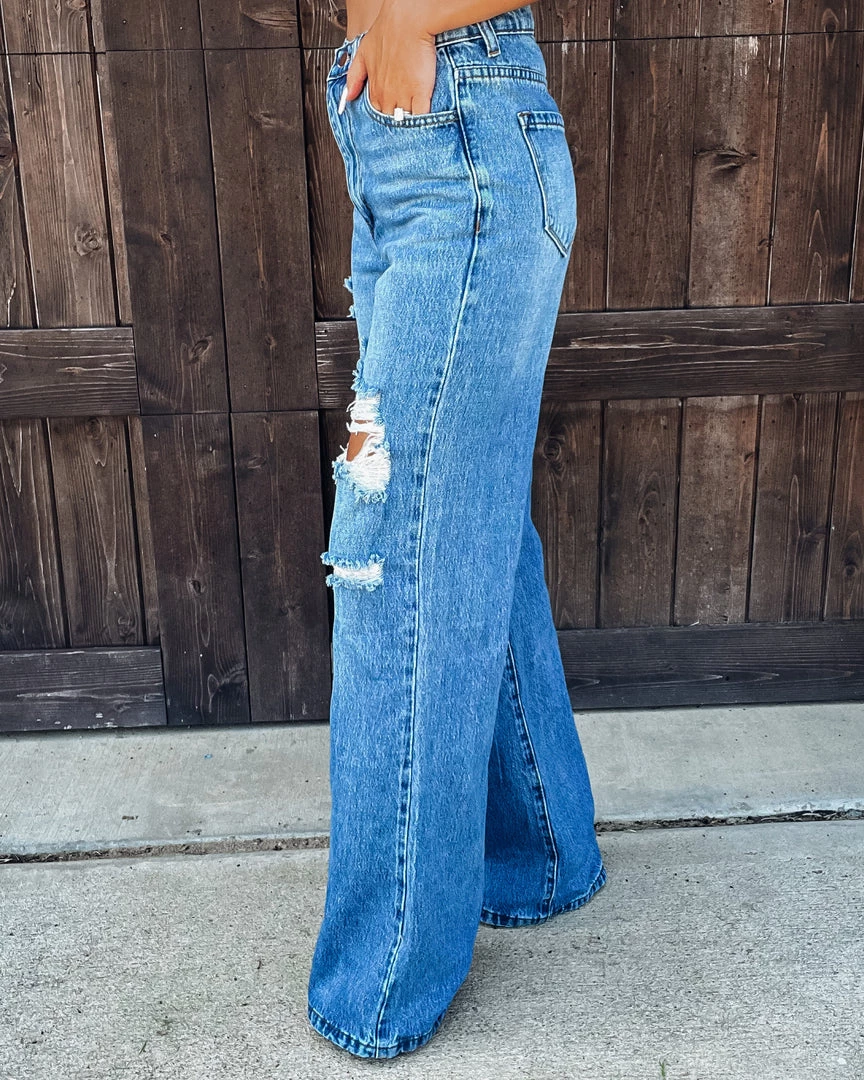 Bar T Boutique LLC What’s New! Giselle Wide Leg Distressed Jeans
