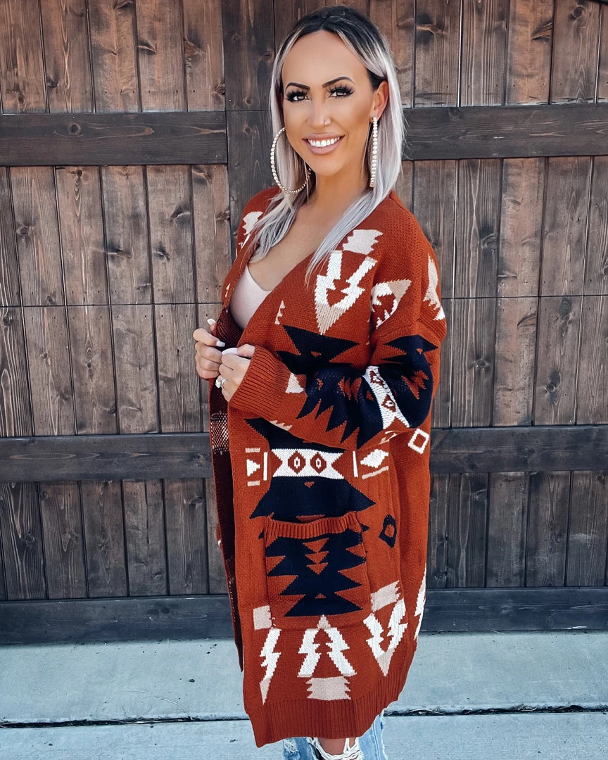 Bar T Boutique Outerwear Lost Pines Aztec Cardigan – Rust/Navy