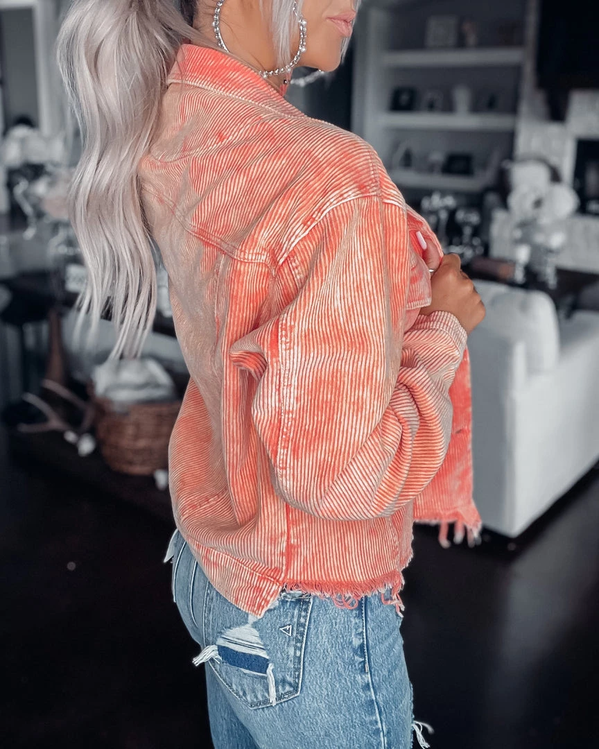 Bar T Boutique Paparazzi Corduroy Shacket – Neon Orange