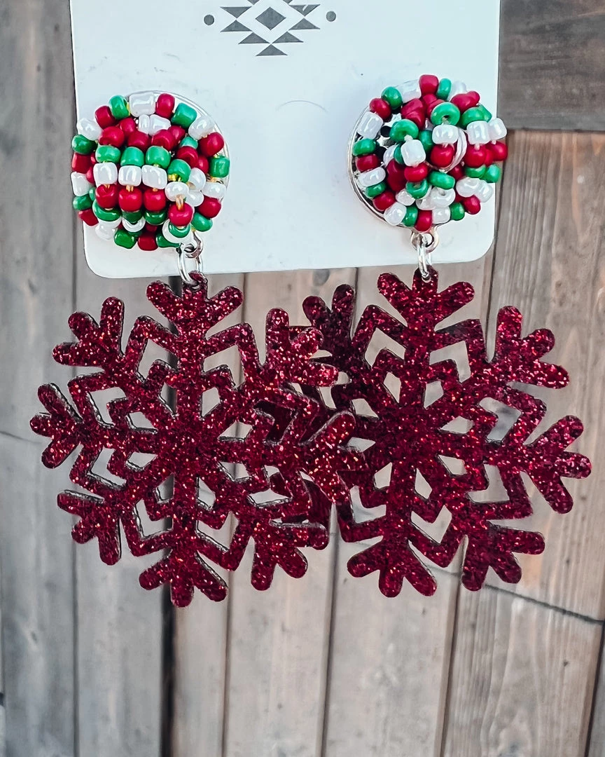 Bar T Boutique Red Snowflake Glitter Earrings What’s New!