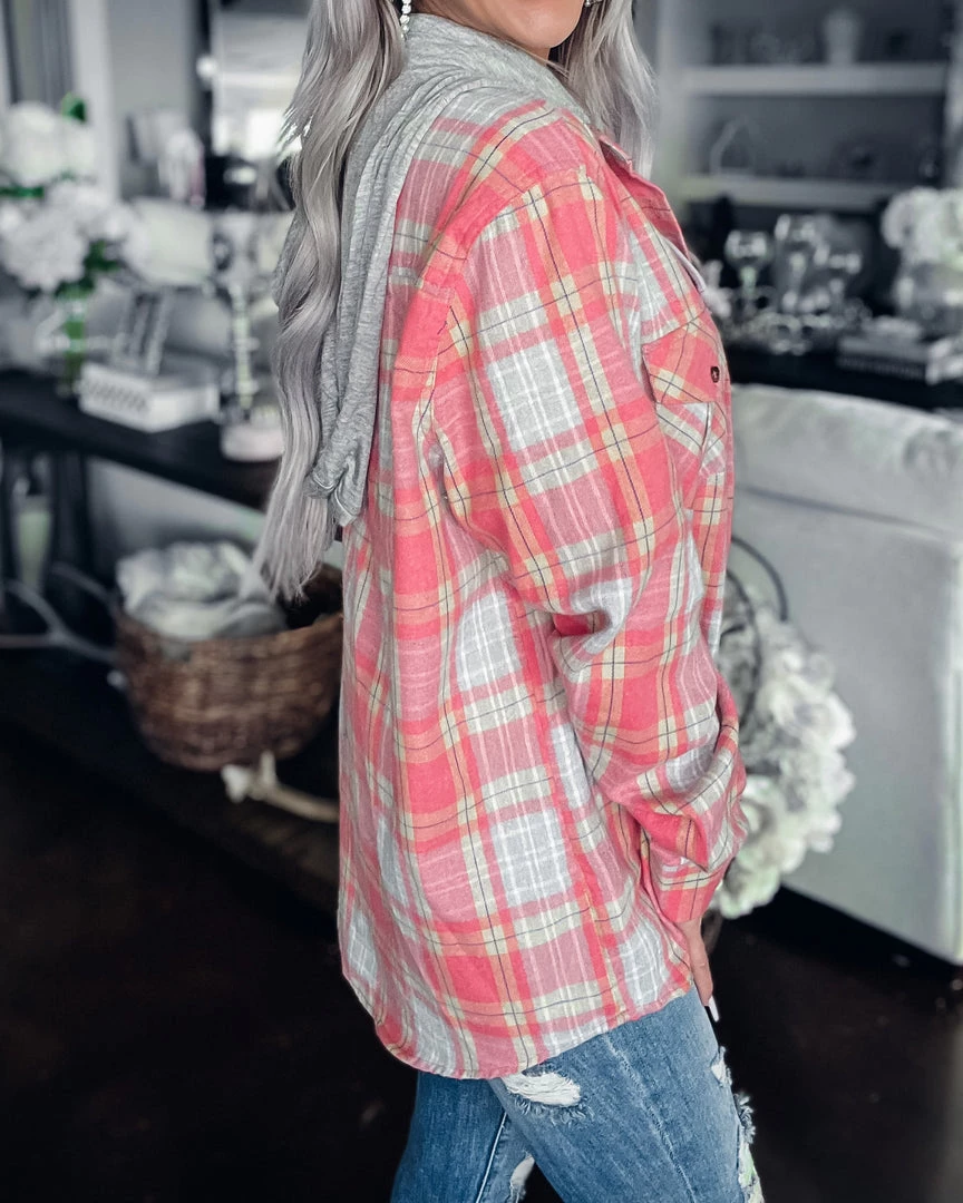 Bar T Boutique What’s New! Main Focus Plaid Hooded Top – Coral